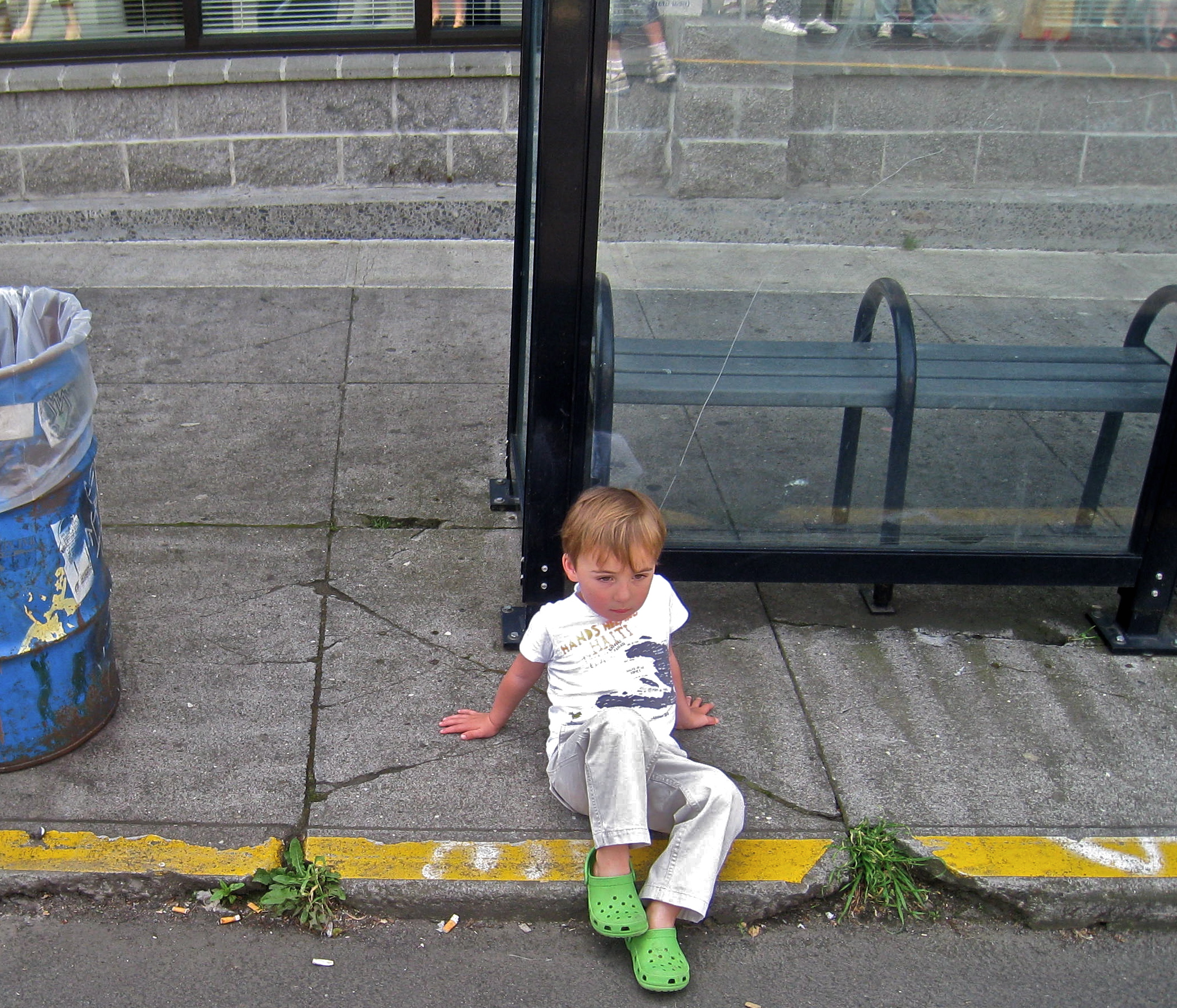 I spent 3 hours taking photos as a volunteer, for the website http://artonalberta.org/ and here are two I took for my own pleasure, of a little boy with the Haiti t-shirt and one of a bulldog on a bench, cooling off!