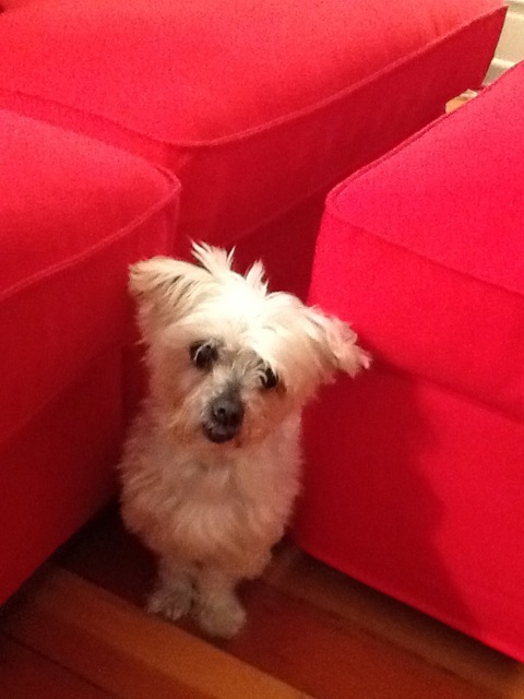 Fellini was so cute he pushed his behind in-between these couches when we were eating dinner