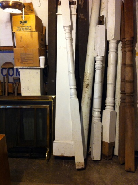 I scouted old Victorian porch parts in search of a post and other stair elements for the outside front