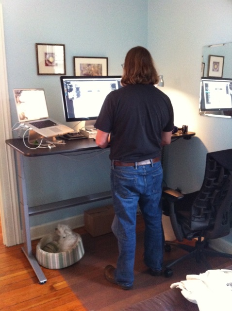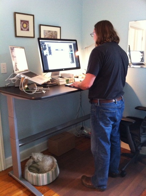 john assembled his new desk today, it moves up and down, OMG!!!!!