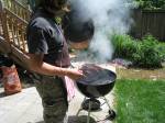 scoop out and gently drop each dumpling into simmering broth with a small oiled teaspoon, let cook for 5 minutes and then turn off flame.